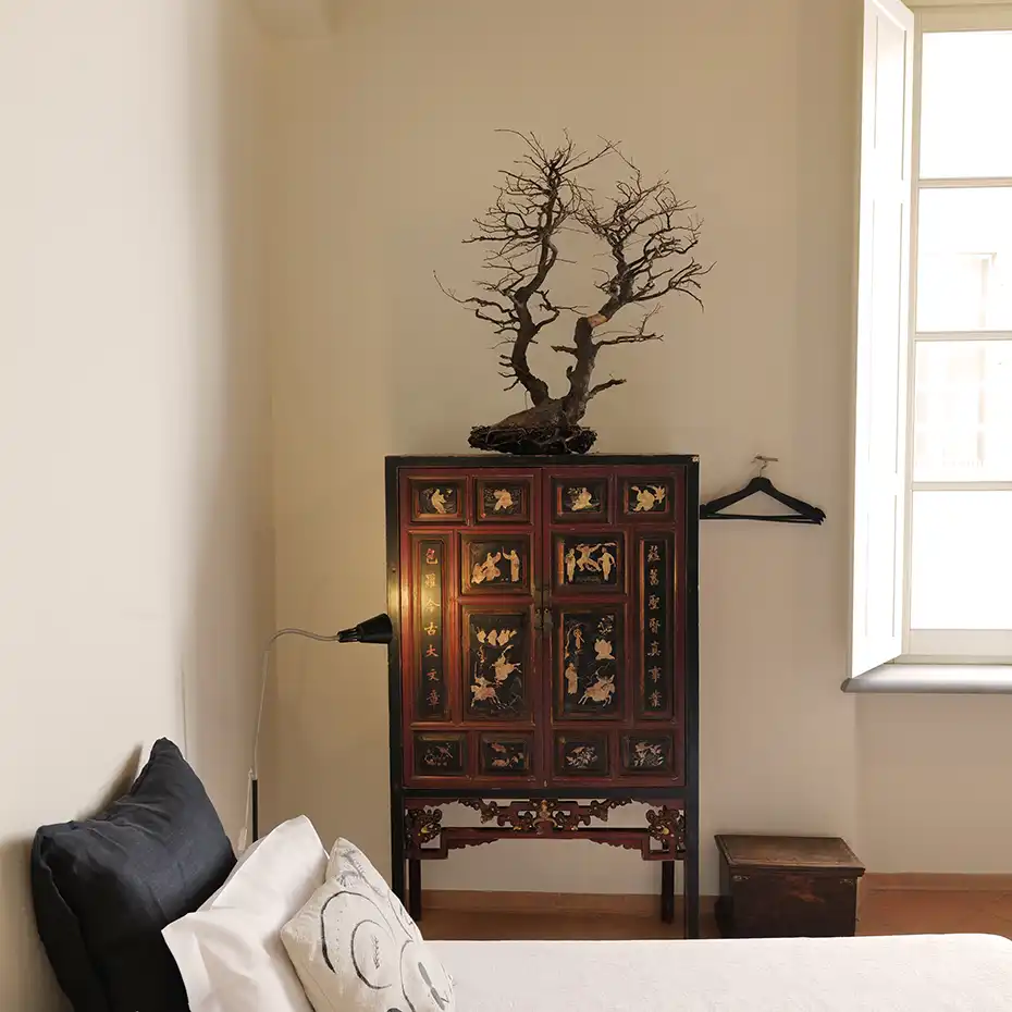 Il bollitore, con una selezione di tè e tisane, è organizzato nel soggiorno.